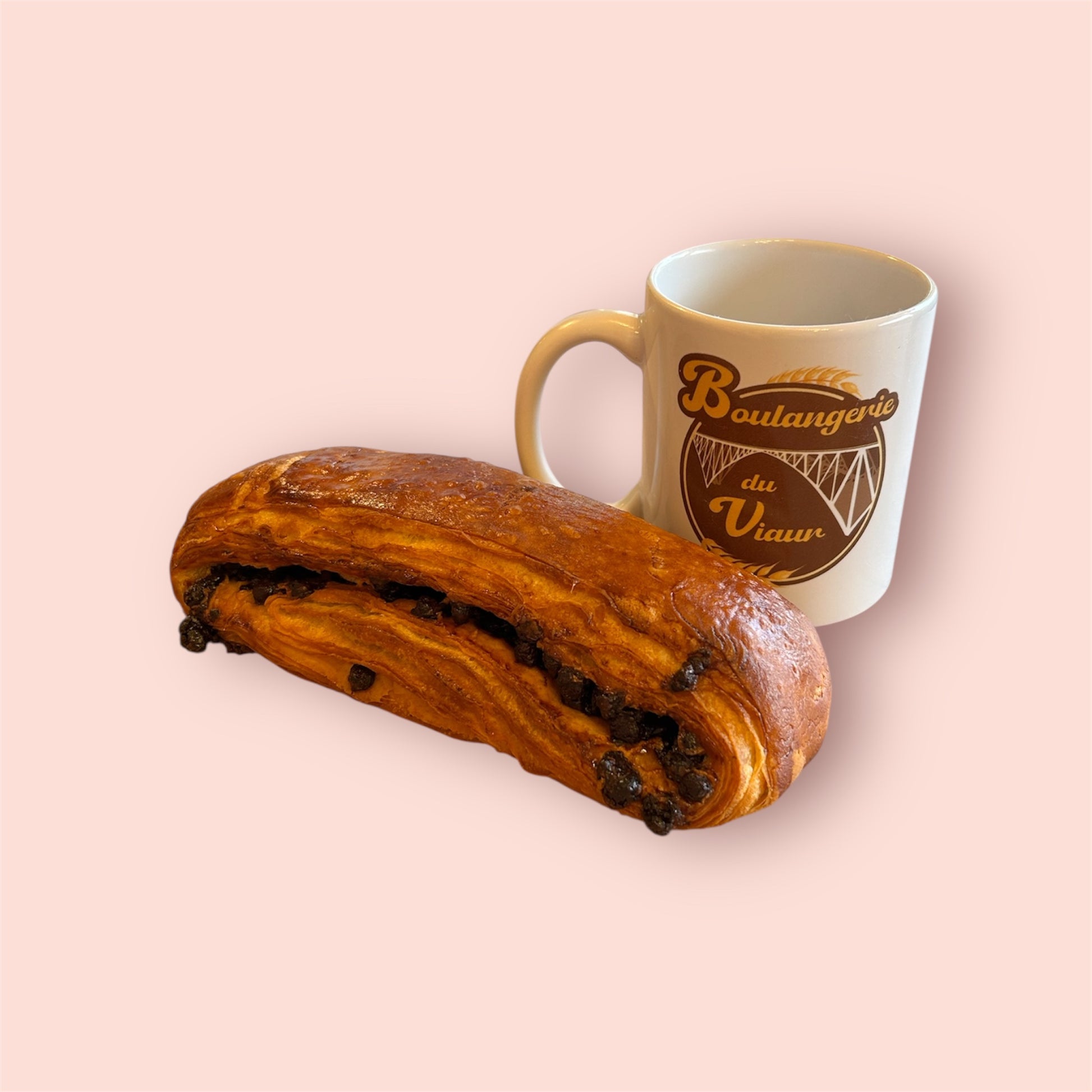 Le Pain Suisse est une viennoiserie artisanale feuilletée, réalisée à base de beurre AOP Isigny Sainte-Mère, qui lui confère sa couleur dorée et son fondant unique. Sa pâte alvéolée et croustillante enrobe une crème pâtissière maison onctueuse, généreusement garnie de pépites de chocolat noir fondantes.